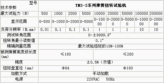 產(chǎn)品概述: TNS-SL系列彈簧扭轉(zhuǎn)試驗(yàn)機(jī)主要用于各種扭簧、蝸卷彈簧、彈簧元件和摩擦機(jī)構(gòu)的扭轉(zhuǎn)角、扭轉(zhuǎn)力矩的測試。 功能特點(diǎn): 該系列彈簧試驗(yàn)機(jī)的扭轉(zhuǎn)扭矩、角度為數(shù)字顯示、角度測量采用角位移傳感器(光電編碼器)、可以對扭矩傳感器的角位移量作自動修正、該扭轉(zhuǎn)試驗(yàn)機(jī)還具 有峰值保持、過載保護(hù)、剛度計(jì)算、結(jié)果打印、數(shù)據(jù)查詢等功能、手動加荷,彈簧扭矩試驗(yàn)機(jī),左右旋隨意選擇、結(jié)構(gòu)緊湊,彈簧試驗(yàn)機(jī) 日本jics,操作簡單,數(shù)顯彈簧扭轉(zhuǎn)試驗(yàn)機(jī),檢測速度快、測量時試件水平放在兩扭矩盤之 間 技術(shù)參數(shù):