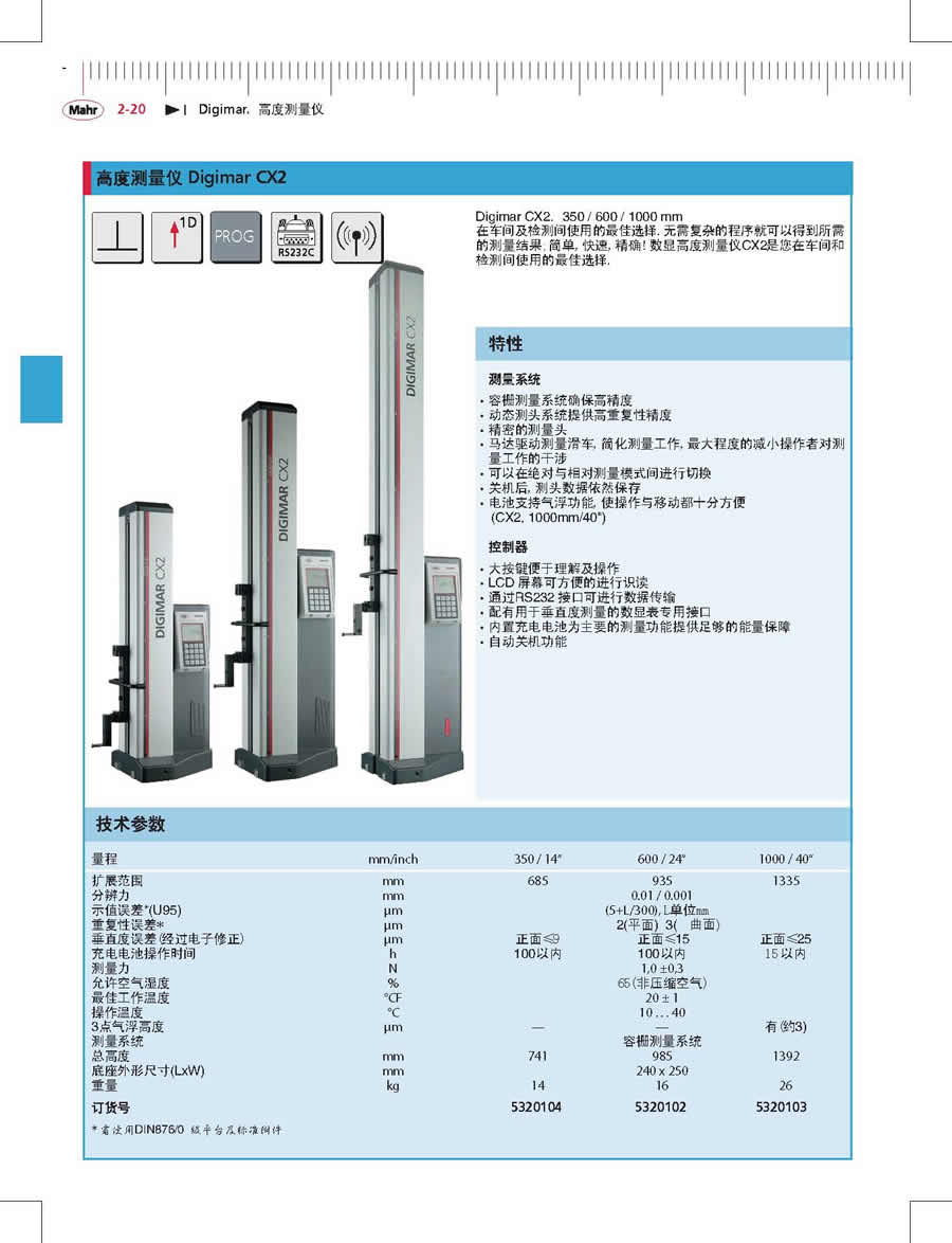 Digimar CX2數(shù)顯高度儀是在車間及檢測(cè)間使用的最佳選擇,測(cè)高儀使用,無需復(fù)雜的程序就可以得到所需的測(cè)量結(jié)果;簡單,蘇州測(cè)高儀價(jià)格,快速,測(cè)高儀工作原理,精確!數(shù)顯高度測(cè)量儀CX2是您在車間和檢測(cè)間使用的最佳選擇。