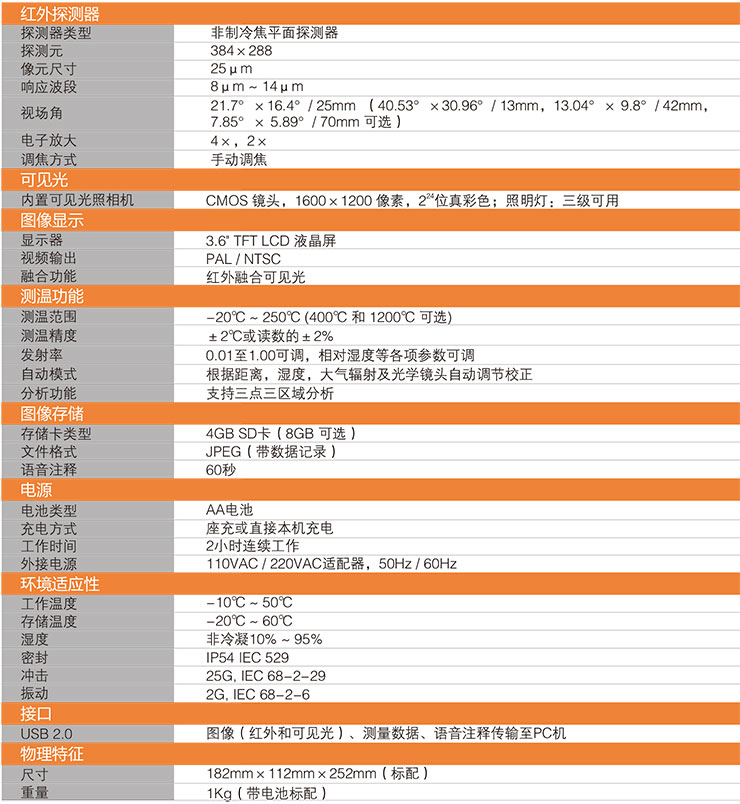 產(chǎn)品特點(diǎn) 靈活的電池適配性 隨處可見(jiàn)的普通AA電池可保證高效持續(xù)的工作效率 移動(dòng)式SD卡儲(chǔ)存 4G容量?jī)?chǔ)存卡能夠輕松儲(chǔ)存大量圖片和錄像 內(nèi)置照明燈 可在低照明環(huán)境下拍攝清晰可見(jiàn)光圖片 四種手動(dòng)鏡頭可選 以最少的投入便能夠滿足用戶不同的需求應(yīng)用 實(shí)時(shí)錄像 連接電腦可實(shí)時(shí)錄制紅外視頻,紅外熱像儀品牌,便于后期觀看及分析