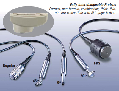 從各種測(cè)量范圍和探頭樣式選擇PosiTector 6000量具的身體和一個(gè)探頭。提供多種選擇的互換探頭。