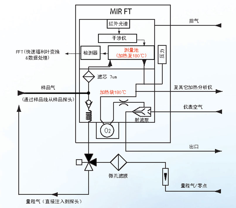 工作原理傅里葉煙氣分析儀基于樣品中氣體分子的紅外光束吸收特性,光吸收可引起每個(gè)分子在特定頻率的振動(dòng)狀態(tài)變化。紅外光源發(fā)射出的中紅外區(qū)的多色光輻射被送入邁克爾遜干涉儀,高溫?zé)煔夥治鰞x,干涉儀包含一個(gè)光束分離器和兩個(gè)近直角放置的反射鏡(一個(gè)為靜態(tài)的,一個(gè)為振動(dòng)的)。光束分離器用于將入射光束平均分成兩束相同的光線,將它們送至每個(gè)反射鏡進(jìn)行反射,并重新匯聚以獲得干涉圖像,窖爐煙氣分析,此干涉圖取決于由反射鏡振動(dòng)引起的光程差。獲得的干涉圖像或干涉圖與每個(gè)波長(zhǎng)時(shí)間函數(shù)的能量變化相一致,當(dāng)光波同向時(shí)為*大值,反向時(shí)為*小值,因此,干涉圖與時(shí)間函數(shù)的能量變化一致,光譜與信號(hào)通過傅里葉變換處理得到的頻率函數(shù)的能量變化一致。MIR-FT/P與專用的高性能便攜取樣系統(tǒng)相結(jié)合,可獲得*佳測(cè)量結(jié)果。