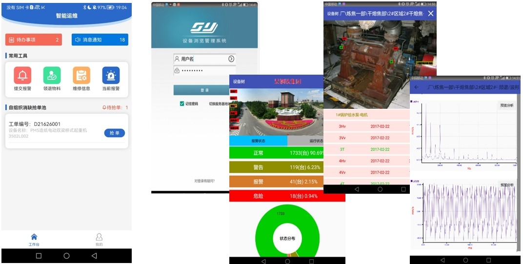 小能手設備運維系統(tǒng):數據集成現場監(jiān)控系統(tǒng)中,防爆設備故障診斷儀,涉及設備運行狀態(tài)的參數,設備狀態(tài)標示,通過DCS系統(tǒng)的OPC接入本系統(tǒng),設備故障診斷的認識,通過標準值設置報警門限。報警后自動發(fā)送通知給設備管理人員。參數數據為智能診斷提供參量信息。